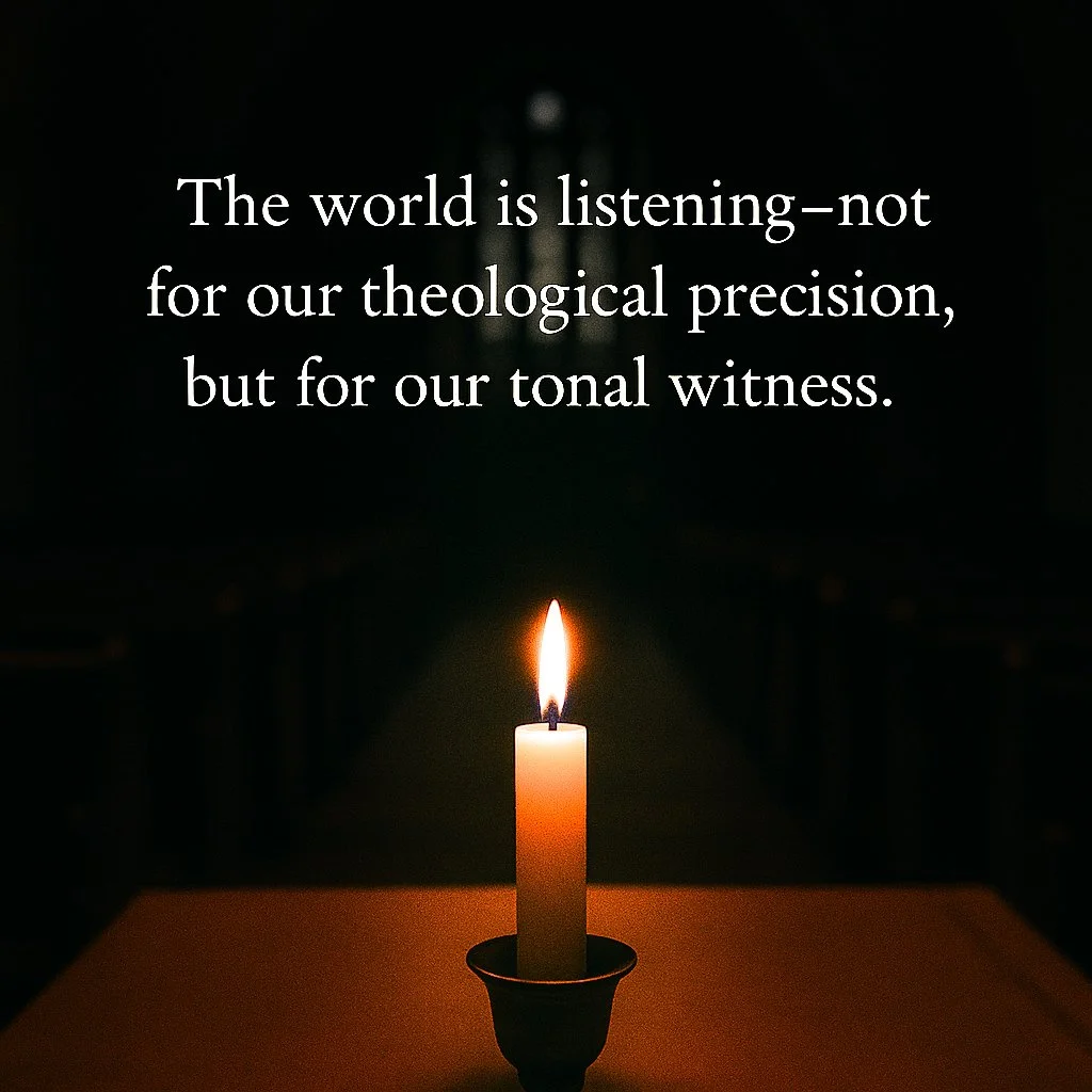 The world is listening, dear friends. It is listening not for our theological precision, but for our tonal witness. Does the Church sound like the crucified Christ? Does it sound like grace with a backbone? Like love with a liturgical spine?